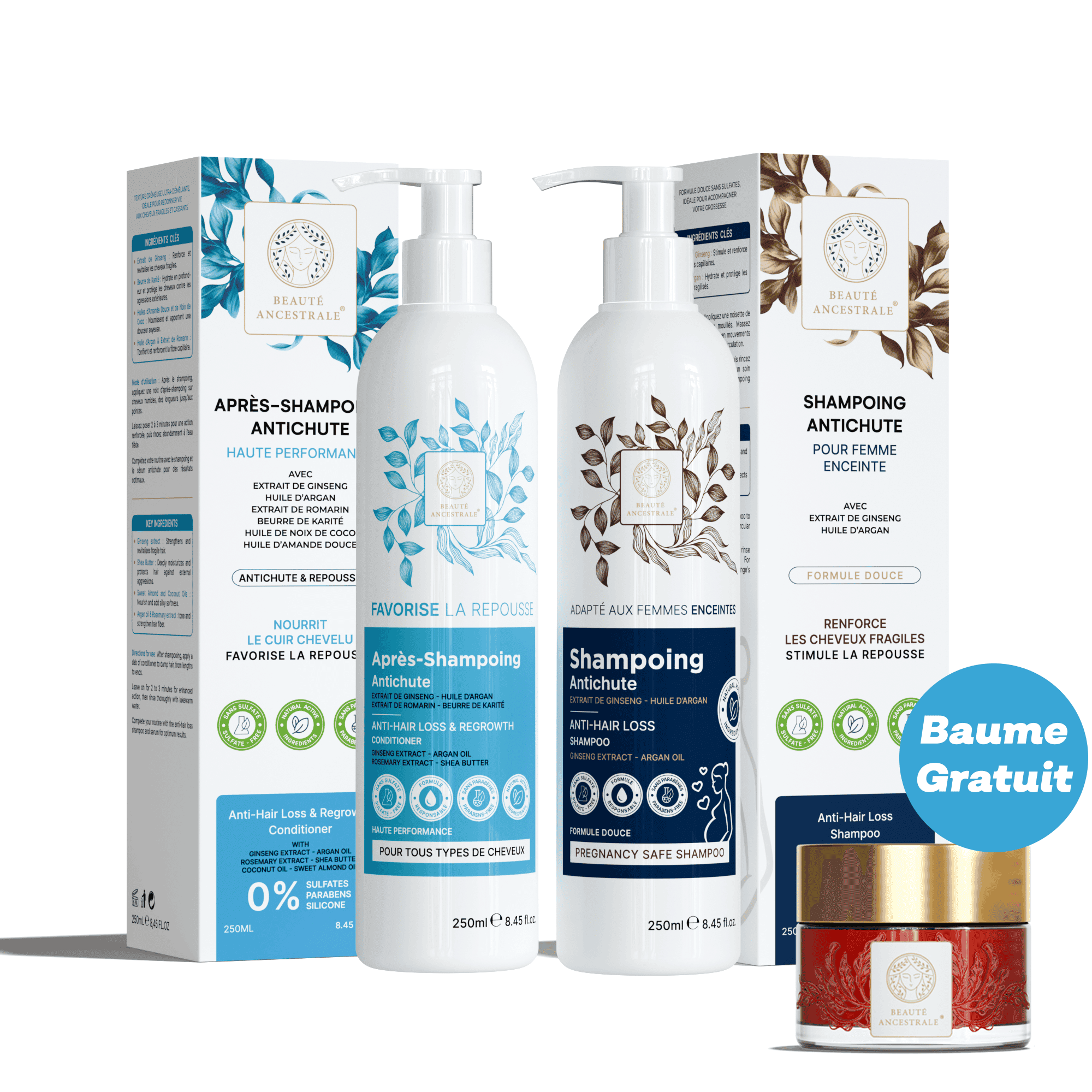 طقم تنظيف الشعر « ضد التساقط » (شامبو + بلسم) للنساء الحوامل من Beauté Ancestrale® يقدم روتينًا فعالًا للعناية بالشعر،